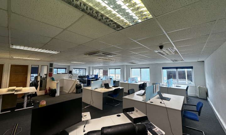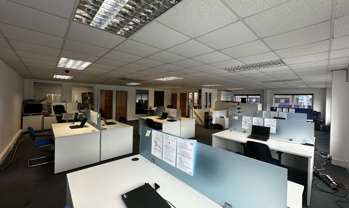 The office on the first floor benefits from a fully fitted kitchenette as well as four separate office/meeting rooms. There is also a good size open plan work space.